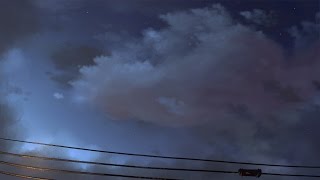 This nighttime sky was inspired by some actual clouds that I saw while eating street BBQ in China. This huge cloud right in the middle of my view had a red belly. And a black cloud wrapped...